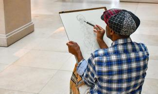 Formerly a political cartoonist for the school paper at Hampton University, and later an “imagineer” for Disney, now he focuses on art that uplifts and inspires. “If people can view my artwork and feel compassion, then I think that we can work through all these issues together,” he told the New York Times.